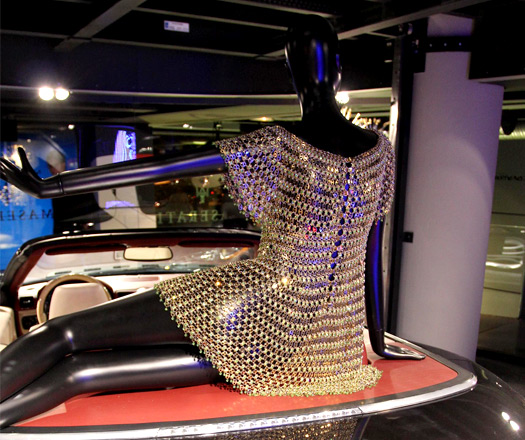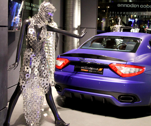 Sergide GranCabrio, Quattroporte Sport GT S Awards Edition, GranTurismo S MC Sport Line ve Maserati’nin en sembolik yarış otomobillerinden 300 S (1955) gibi modelleri ile aralarında Audrey Hepburn’ün “Two For The Road” (1967) filminde giydiği alüminyum disklerden yapılmış elbisenin de bulunduğu ikonik Paco Rabanne giysileri birlikte boy gösterdiler.