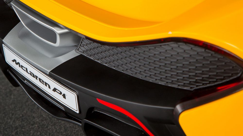 Çocuklar için oldukça ilgi çekici olan oyuncak modeli gerçeğini aratmayacak özelliklere ve tasarıma sahip. Yukarı doğru açılan kapılarıyla oldukça havalı görünen oyuncak modelde sadece Volkan Sarısı seçeneği sunuluyor. Elektrikli motor ile birlikte sunulan oyuncak tıpkı normal bir araba gibi vitesli. 3 ileri vitese sahip oyuncakta geri viteste bulunuyor. Oyuncak modelin konsolunda MP3 ve müzik erişimine izin veren bir sistem de yer alıyor. McLaren’ın ilk elektrikli otomobili olma özelliğini taşıyan oyuncak 486 dolardan alıcılarını bekliyor.