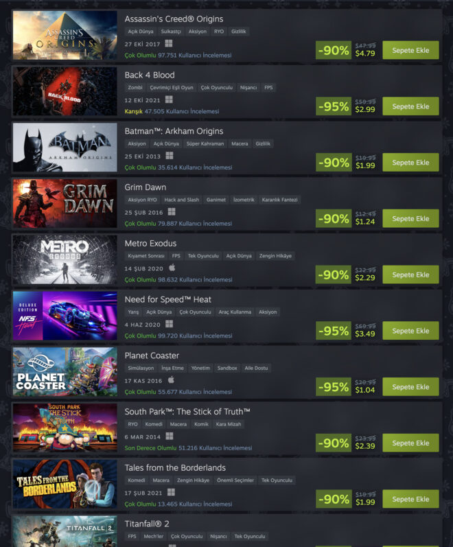 Dünyanın en büyük oyun marketi olmaya devam eden Steam, merakla beklenen kış indirimlerini başlattı.