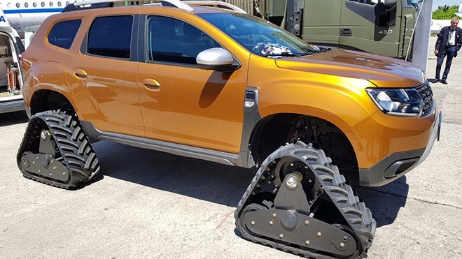 Romanya’nın başkenti Bükreş‘te gerçekleştirilen Black Sea Defense & Aerospace etkinliğinde karşımıza çıkan paletli Dacia Duster örneği, diğer projelerin arasından kolayca sıyrılmayı başarıyor. Organizasyona katılanların da büyük ilgi gösterdiği söylenen projeyi ACF Track isimli yerel bir şirketin yaptığı da karşımıza çıkan detaylar arasında. 11.000 euro gibi bir fiyat etiketiyle Duster sahiplerine sunulduğu görülen bu geliştirme, fabrika çıkış versiyonun seviyesine oranla oldukça yüksek. Türkiye’de 1,2 litre, 1,5 litre ve 1,6 litre olmak üzere üç farklı motor seçeneğiyle satışta olan 2018 Dacia Duster ile ilgili merak ettiğiniz tüm detaylara buradan ulaşabilirsiniz.