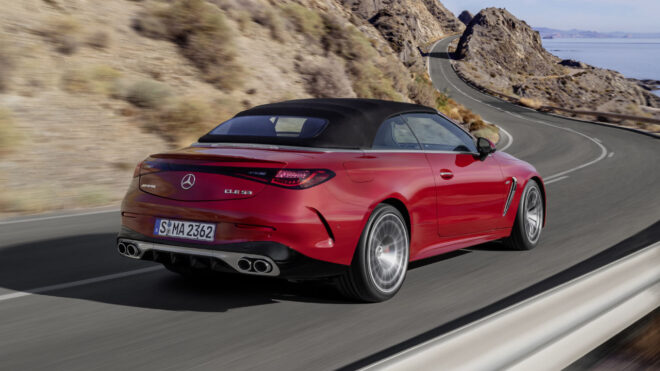 Mercedes-AMG CLE 53 4MATIC+ Cabriolet, AMG tarafının üstü açılır kategorideki en yeni giriş seviyesi modeli ve gücünü 3.0-litrelik çift turbo destekli ve altı silindirli “M256” motordan alıyor. 48V marş jeneratörü ile desteklenen yani bir mild-hybrid / hafif-hibrit temele sahip olan otomobil, sürücüsüne 442 beygir güç ile 560 Nm torkun kontrolünü veriyor ve ihtiyaç halinde 10 saniye boyunca tork 600 Nm seviyesine kadar çıkarabiliyor. 0’dan 100 km/s hıza 4,2 saniyede ulaşabilen ve burada rakipler BMW M440i ile Ford Mustang GT’den daha hızlı olduğu söylenen araç, en üstte normalde 250 km/s hızı görebiliyor (Elektronik olarak limitli) fakat maksimum hız ekstra elde edilebilen AMG performans paketiyle beraber 280 km/s seviyesine taşınabiliyor. Tork vektörlü dört tekerlekten çekiş sistemi ve dokuz vitesli şanzıman aracılığıyla gelen model, söylendiği kadarıyla hangi mod seçilirse seçilsin vites değişimlerinde herhangi bir gecikme yaşatmıyor. 19-inç ya da 20-inç jantlar ile elde edilebilen ve tasarımsal olarak ne içinde ne de dışında büyük bir sürpriz ortaya koymayan 4MATIC+ Cabriolet, daha rahat dönüş için arka lastikleri hareket ettirebiliyor ve AMG performans paketinde özel bir drift yani yanlama modu da getiriyor. Kumaş çatısı 20 saniyede açılabilen ve kapanabilen araç, arka taraf çok dar olmasına rağmen dört kişi taşıyabiliyor. Fiyatı henüz net olarak açıklanmayan model, ileride Türkiye’de de satılabilir.