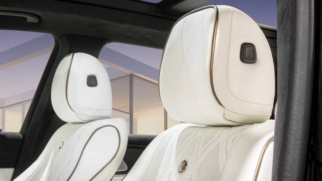 Projeye görsel olarak bakıldığında dış bölümde Maybach odağındaki tüm parçaların kendisine yer bulduğu görülüyor. Obsidyen Siyahını Tiffany Gold ile birleştiren iki tonlu boya kaplamasının burada hissedilecek ilk parça olduğunu söyleyebiliriz. Özel renk kombinasyonunun yanında ızgara, jant ve krom parçaların artırılması da dikkat çekiyor. Yeniden tasarlanan ön tamponda, kaputta ve arkada daha fazla krom görülebilir.