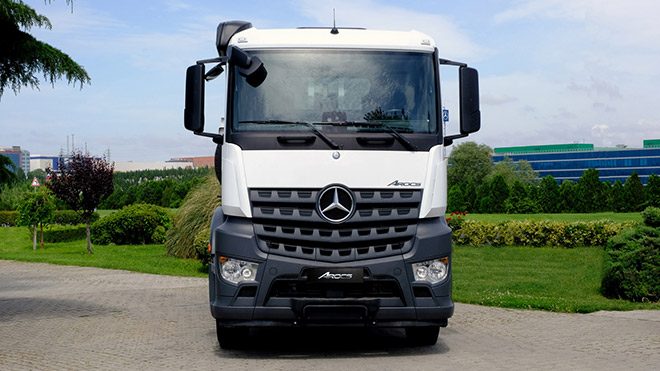 Türkiye pazarına yaptığı yatırımla 50 yıllık bir geçmişi geride bırakan Mercedes-Benz, özellikle kamyon ve otobüs üretiminin büyük bir bölümünü ülkemizde gerçekleştiriyor. 2016 itibarıyla Aksaray fabrikasının 30. yılını kutlayan marka, bünyesinden barındırdığı Türk mühendislerle başarılı işlere imza atma konusunda da istikrarlı. Tıpkı ürün gamının en önemli modellerinden birisinin şu anda görmekte olduğumuz örneğinde olduğu gibi. Mercedes-Benz Türk’ün AR-GE mühendisleri tarafından geliştirilen ve 2018 yılı Mayıs ayı itibariyle Aksaray Kamyon Fabrikası’nda üretilmeye başlanan Arocs 2532 K 6×2; damper, asfalt distribütörü, itfaiye, su tankeri ve çöp kamyonu gibi pek çok farklı görev tipine uygun olacak şekilde karşımızda duruyor. 320 beygir güç ve 1.300 Nm tork değerleri üreten 7,7 litrelik motorun görev yaptığı modelde PowerShift 3 otomatik şanzımana yer verilmekte.