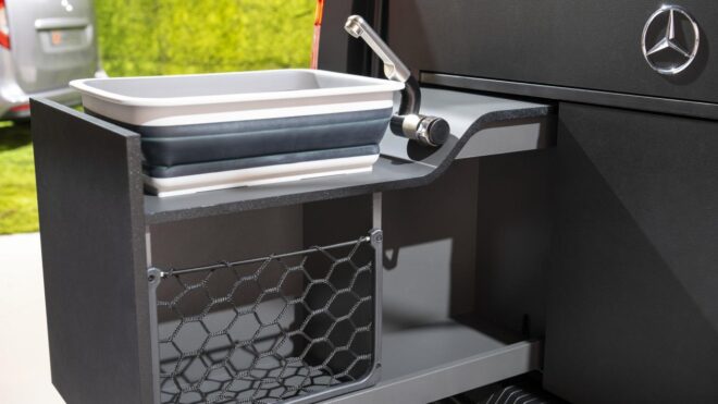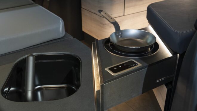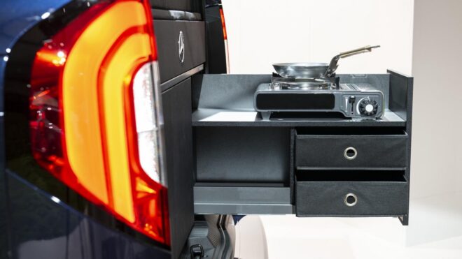 Aracın sol iç tarafında ise (arka kokpite bakan) bir başka koltuk bulunuyor. Ayrıca bu koltuğa entegre edilmiş yerleşik çekmece sistemi, kamp aksesuarları için yeterli depolama alanı sunuyor. Bir indüksiyon ocağı ve esnek bir çıkarılabilir gaz kartuşu ocağı ile araç içinden çıkarılabilen bir çekmece de araçta kamp severleri bekliyor. Aracın (arka kokpite doğru bakan) sağ tarafında ise, elektrikli olarak da yüksekliği ayarlanabilen katlanabilir bir masa bulunuyor. Şimdilik konsept niteliğinde gösterilen Marco Polo1 paketinin satışa hazır son halini önümüzdeki yılın ikinci yarısında göreceğiz. Standart EQT ailesi ise 49.000 euroluk başlangıç fiyatıyla sunulacak.