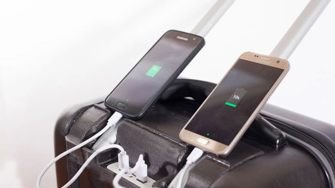 Gelelim bavulun can alıcı özelliği olan merdiven çıkabilmesine. Halihazırda patent başvurularının sonuçlanmasını beklediklerini belirten geliştiriciler, bavulun ön yüzüne yerleştirdikleri paletlerle merdivenlerde kullanıcının işini kolaylaştırıyor. Paletlerin elektrikli bir mekanizması yok; bavulun ağırlığıyla yüzeye doğru uyguladığı basınç mekanizmanın çalışması için yeterli oluyor. Basit bir tasarım olduğu için de geliştiriciler, bavulun iç hacminden alan çalmak zorunda kalmamış. Bavulun tutma kısmı da merdiven inip çıkmak için yeniden tasarlanmış. Sadece dikey olarak değil öne arkaya doğru da hareket ettirilebiliyor. Dolayısıyla da 360 derecelik bir kullanım açısı sunuyor. Eğim verildiğinde hem merdivenlerde daha rahat bir açıyla tutuluyor hem de sabit dururken tabletler ve akıllı telefonlar için stant olarak kullanılıyor.