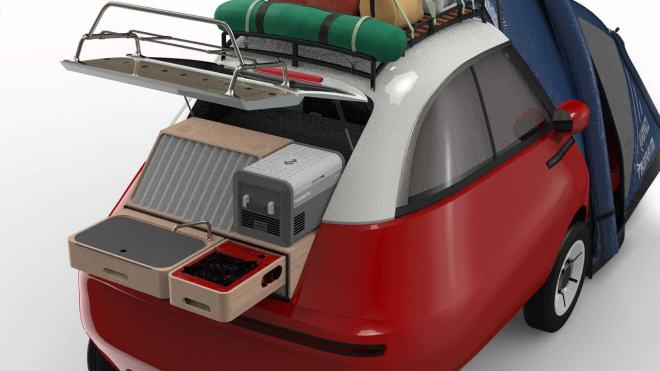 Microlino Camper kullanışlı bölümleriyle öne çıkıyor