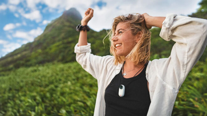 Tüm detaylarına burada yer verdiğimiz Insta360 Go 2 üzerine kurulan ve tasarımsal olarak benzer mini form faktörünü devam ettiren Insta360 Go 3, her aksiyonu kayıt altına almanıza imkan tanıyan bir kamera modeli. Action Pod isimli kablosuz çalışan aksesuarı ile kullanıcılara, çekim ile bağlantı kolaylığı getiren faydalı bir hareketli ekran sunan ürün, firmanın resmi verilerine göre 45 dakikalık bir pil ömrü (Action Pod ile 170 dakika) sağlıyor ve 11.24mm f/2.2 kamera sistemiyle maksimum 2.7K 30 fps video çekebiliyor. İstenirse video yanında DNG RAW formatında fotoğraf çekimi de yapabilen ürün, 1440p çözünürlükte Time-Lapse çekimler gerçekleştirebiliyor, 120 FPS’e ancak 1080P çözünürlükte çıkabiliyor. Geniş açı görüş açısına sahip olduğundan konumlandırması kolay olan ürün, ufak gövdesinden dolayı sadece 35 gram ağırlığında olduğundan bir şapkanın ucuna takılabiliyor, özel aparat ile bir kolye gibi dahi kullanılabiliyor. Cihaz bu sayede POV videolar için harika bir seçenek oluyor.