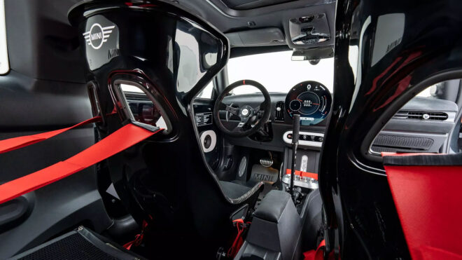 Sadece tek bir örneği bulunacak araçlardan Machina, ilk olarak kaputuna yerleştirilen ışık sistemiyle dikkat çekiyor. Doğrudan yarış odaklı tasarlanan modelde hidrolik el frenine yer veriliyor. Tamamen elektrikli bir temele sahip olan Skeg ise fiberglass gövde parçalarının da etkisiyle Machina’ya kıyasla daha “garip” görünüyor. Aşağıya bakan bir rüzgârlığa yer verilen araç, daha çok sörf odaklı tasarlanmış ve Machina gibi yarış tipi koltuklarla donatılmış. Elektrikli Skeg için 255 beygir güç ve 350 Nm tork, 2.0 litrelik turbo destekli dört silindirli motorun kullanıldığı Machina içinse 228 beygir güç ve 280 Nm tork değeri açıklanıyor. Karşımıza standart olarak çıkarılan en son Mini John Cooper Works modelleri, güçlerini 2.0 litrelik turbo destekli bir benzinli motordan alıyordu. “B48” kodlu motor 228 beygir güç ve 380 Nm tork üretiyor. 0’dan 100 km/s hıza normal versiyonu 6,1 saniyede, üstü açık versiyonu ise 6,4 saniyede çıkabilen “sportif” JCW modelleri, 250 km/s hızı geçemiyor. Yeni araçlarından manuel vites opsiyonunu kaldıran ve bu konuda bazılarını oldukça üzen Mini, modelleri yalnızca çift kavramalı otomatik şanzıman ile sunuyor. Yeni JCW’lerin dış tasarımları gibi kokpit alanlarında da bir sürpriz bulunmuyor. Şirketin yuvarlak formlu büyük dokunmatik ekranıyla donatılan kokpitte, oldukça kalın bir sportif direksiyona yer veriliyor.
