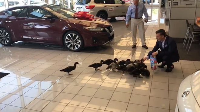 Amerika’da yer alan bir otomobil bayisi, kampanya ve diğer gelişmelerinden çok şu sıralar sahip olduğu ördek ailesiyle gündemde.