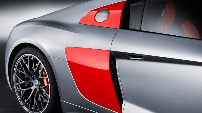 Aracın karakteristik farklarına geçmeden evvel diğer versiyonlarla benzerlik gösteren teknik değerlerini belirtmekte fayda var. 5.2 litre hacimli on silindirli motorun görev yaptığı R8 bu motoruyla 610 beygir güç ve 540 Nm tork değerlerine sahip. Toplamda 1715 kilogram ağırlığa sahip olan R8 yedi ileri şanzımanıyla saate maksimum 330 kilometre hıza 0‘dan 100‘e ise 3,2 saniyede çıkabiliyor. Toplamda sadece 200 adet üretilecek olan modelde yapılan değişimlere baktığımızda gümüş, kırmızı ve siyah renklerden oluşan özel bir grubun kullanıldığını görüyoruz. 20 inç büyüklüğündeki alüminyum jantların kullanıldığı modelde ön lip ve arka difüzörde de küçük değişimler yer alıyor.