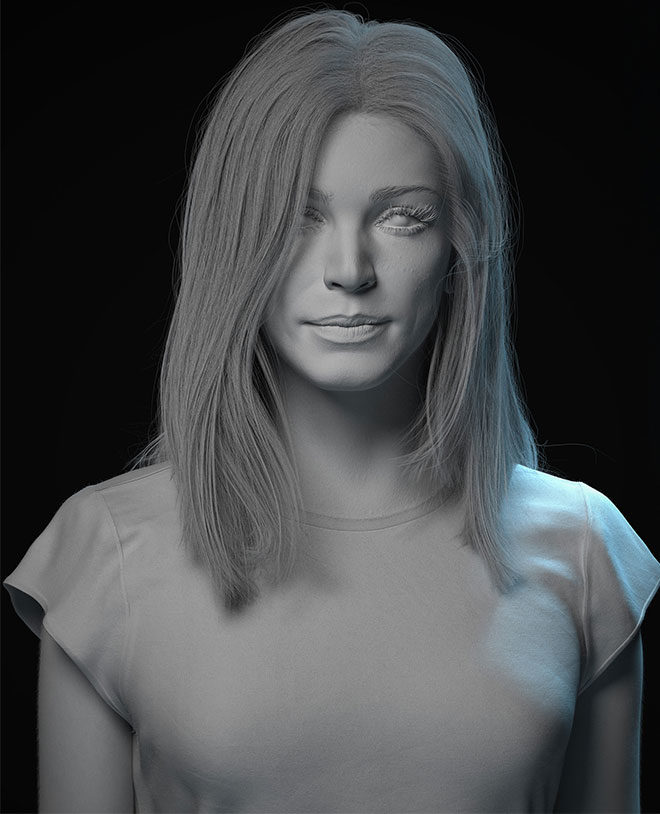 Artur Tarnowski 3D modelleme konusunda Varşova merkezli önemli bir stüdyo olan Studio Layopi Games için karakter tasarımları yapıyor. 3D portrelerinin modellemelerini yaparken iki hafta harcadığını söyleyen Tarnowski, saç, yüz ifadesi ve gölgelendirme gibi detayların işin içine girmesiyle, bu portreyi “bir buçuk ay” gibi bir sürede anca tamamlayabilmiş. ZBrush kullanan sanatçı, Texturing XYZ’yi mikro detaylar için seçmiş.