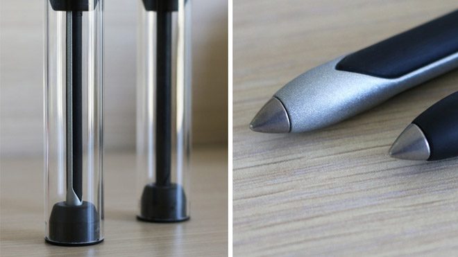 Her tükenmez kalemi bekleyen hazin son mürekkebin bittiği anla geliyor. Ne yazık ki tükenmez kalemler de tükenebiliyor. LIBRA ise kullandığı özel yöntem ile mürekkep derdini ortadan kaldırıyor ve kalemi gerçekten tükenmez hale getiriyor. Oldukça sade bir tasarıma sahip olan LIBRA kalemler siyah, gümüş ve altın olmak üzere üç farklı renk seçeneğiyle geliyor. Oval tasarım, kalemin tutma noktasına doğru kalınlaşarak daha rahat bir tutuş deneyimi amaçlamış. Kalemin ucunu açmak içinse herhangi bir mekanizma bulunmuyor çünkü kalemin ucunu açmanıza gerek olmuyor. Kalem mürekkepsiz olduğu için leke bırakmayacağından ucunun kapatılmasına da ihtiyaç duyulmamış.