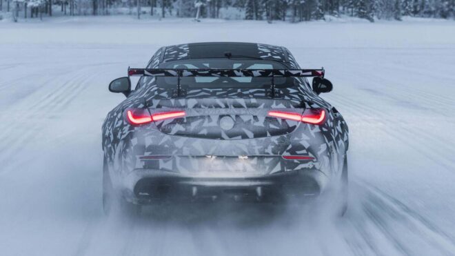 Özel Mythos serisine SL 63 temelli PureSpeed‘in ardından eklenecek ikinci otomobil modeli, şu anda kış testleri gerçekleştirilen yeni Mercedes-AMG CLE Coupé olacak. Gücünü çift turboyla desteklenen 4.0 litrelik V8 üniteden (daha yüksek devir, daha keskin gaz tepkisi ve daha yüksek verim için flat-plane crank taşıyacak) alacağı ve 650 beygirden fazla güç sunacağı aktarılan CLE Mythos, yıl sonunda düşük kapasitede üretime alınacak ve 2027’nin başında yollara çıkarılacak. 0’dan 100 km/s hıza 4 saniyenin altında ulaşacağı belirtilen CLE Mythos’un oldukça yüksek bir satış fiyatına sahip olması bekleniyor. Yakında daha fazla detayın verileceği araçtan sınırlı sayıda üretilecek. Mercedes-Benz, SL PureSpeed modelinden toplamda 250 adet üretim gerçekleştirmişti.