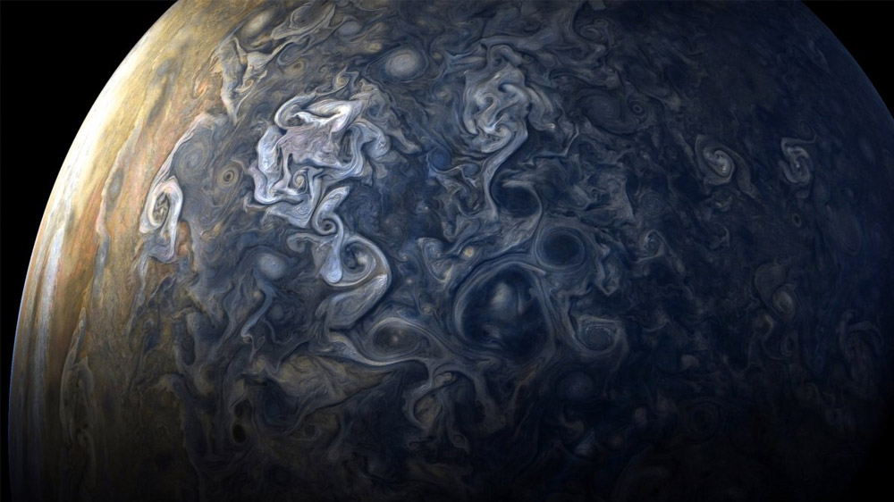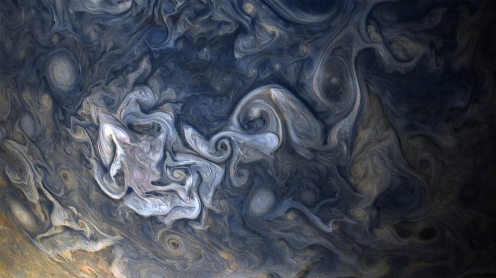 NASA, Jüpiter’in yeni fotoğraflarını yayınladı. Gezegenin nefes kesen “dumanlı” atmosferi, fotoğraflarla gözler önüne seriliyor.