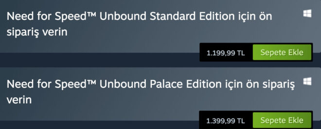 Yeni NFS oyunu Need for Speed Unbound, Steam üzerinden tam 1.199 TL‘ye ön siparişe açıldı. Oyunun Palace Edition sürümü ise tam 1.399 TL seviyesinde yer alıyor. Bu fiyatların daha kötüsü de bulunuyor. Oyunun Xbox tarafındaki Türkiye ön sipariş fiyatı 1.399 TL seviyesinde yer alıyor. Palace Edition sürümü ise Xbox tarafında 1.599 TL‘ye satılıyor. Bu fiyatların daha sonra artış gösterme ihtimali de bulunuyor. Oyun fiyatlarının Türkiye’de bu seviyeye kadar gelmesi gerçekten oldukça üzüyor.