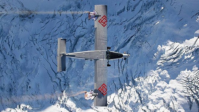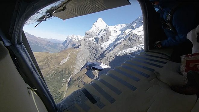 Ekstrem spor tutkunlarından Fred Fugen ve Vince Reffet, sıra dışı bir wingsuit uçuşuna imza attı. İsviçre’nin Bern ve Valais kantonlarında bulunan Bern Alpleri’ndeki zirveye (4.115 metre) çıkan iki isim, dağın zirvesinden atlayarak etkileyici bir uçuş gerçekleştirdi. Philippe Bouvier tarafından uçan bir uçağı yakalamak için hızlanan sporcular, pilotla telsiz yardımıyla haberleşti. Saatte 138 kilometre hızla uçan uçakla aynı hıza ulaşan sporcular becerileriyle uçan bir uçağa girmeyi başardı.