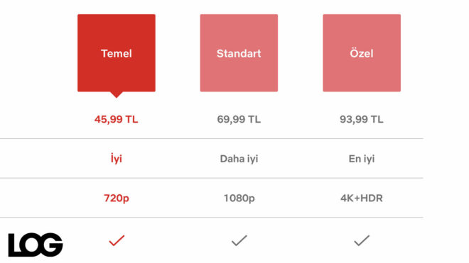 Netflix, Türkiye’de 46 TL’ye satılan temel paket ile şimdiye kadar 480P çözünürlük sunuyordu. İşte bu durum sonunda değişti. Kasım ayı itibarıyla bu pakette HD kalitesine yani 720P çözünürlüğe çıkış yapıldı (Artış yakında eksiksiz olarak her ülkede aktif edilecek). Firma 70 TL’lik standart pakette uzun zamandır Tam HD, 94 TL’lik özel pakette ise Ultra HD çözünürlük desteği veriyor.