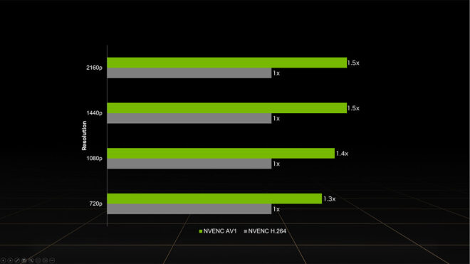 Güncelleme ayrıca AV1 kodlu videonun Gelişmiş RTMP (Gerçek Zamanlı Mesajlaşma Protokolü) aracılığıyla YouTube tarafından işlenmesine de olanak tanıyor. Bu konuda Nvidia Türkiye detaylı olarak şunları aktarıyor: “OBS Studio 29.1’in piyasaya sürülmesi, sekiz nesil NVENC (NVIDIA Kodlayıcı) ile GeForce RTX 40 Serisi ekran kartlarında AV1 kodlaması için destek ekliyor. OBS’in en son sürümüne yeni nesil video codec bileşeni desteği canlı yayınların daha verimli daha verimli bir şekilde yapılmasına olanak tanıyor. GeForce RTX 40 Serisi GPU’larla, H.264’te kodlamaya göre verim %50 oranında artarken rakip ekran kartlarına kıyasla daha kaliteli görseller sunuyor.