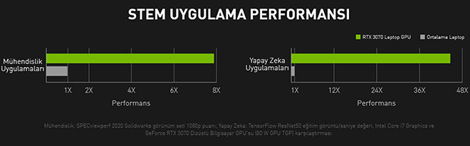 NVIDIA RTX-30 serisi ekran kartlarına sahip dizüstüler sayesinde öğrenciler birçok işlemi çok daha hızlı şekilde yerine getirebiliyor. Böylelikle öğrenciler ekranın başında beklemek ve zaman kaybetmek yerine her zaman bir adım önde oluyorlar.