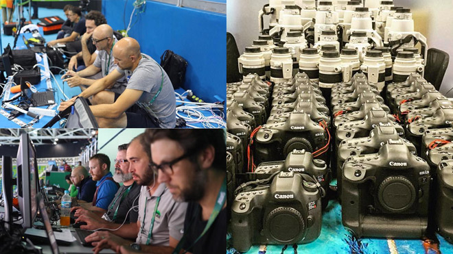 Getty fotoğrafçıları kilit pozisyonlarda yerini alıyor ve deklanşöre basıyor. Organizasyon, Canon ve Nikon DSLR’ların Ethernet desteğinden yararlanıyor ve gerekli Ethernet altyapısı oluşturuluyor. Fotoğrafçı bulunduğu yerdeki kabloyu DSLR’ına takarak çektiği fotoğrafı basın merkezinde beklemekte olan editöre gönderiyor. Bu ağdan basın merkezindeki editörün ekranına saniyede on kare fotoğraf düşüyor.