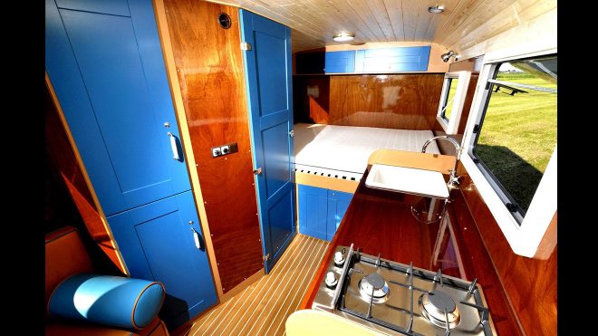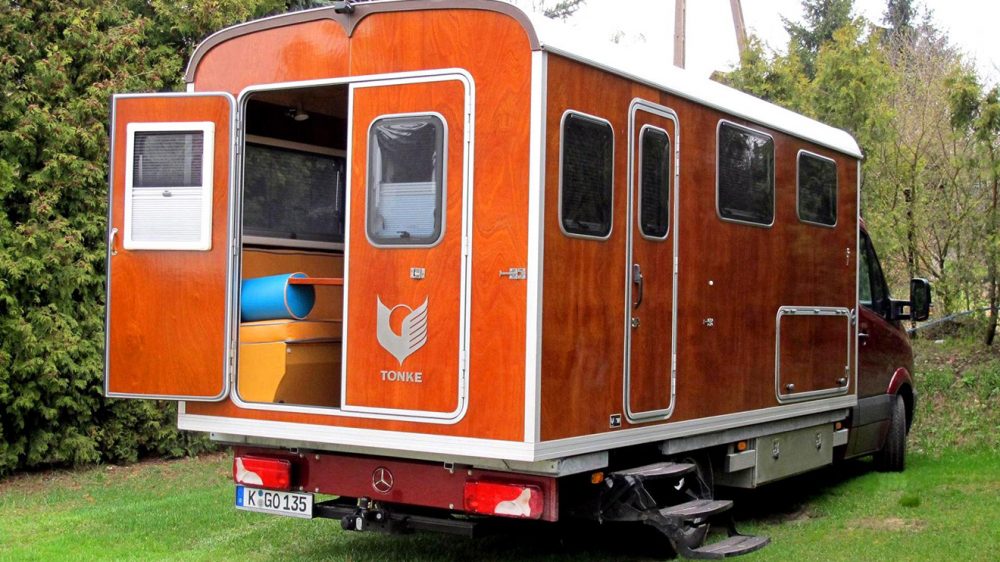 Dışarısı ve içerisinde yer alan neredeyse tüm ana parçaları maun detaylardan oluşan karavan projesiyle birlikte kullanıcılar bir dağ evi tadında bir yapıyı istedikleri her yere taşıma imkanına sahip oluyor. Tonke’nın tanıtım amacıyla Mercedes-Benz Sprinter tabanlı olarak geliştirdiği projeyi aynı zamanda FIAT Ducato versiyonuyla da almak mümkün. Elektrik enerjisinin desteği için güneş panellerinden yardım aldığını gördüğümüz Tonke; 260 litrelik bir su deposu, ocak, fırın, çift kişilik yatak gibi olmazsa olmaz bölümleri de es geçmiyor. İki yıldır üst üste kendi sınıfında ödül almayı başaran Tonke’nin sayfasına buradan ulaşarak diğer tasarımını inceleyebilirsiz.
