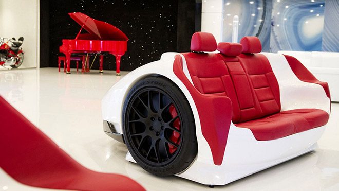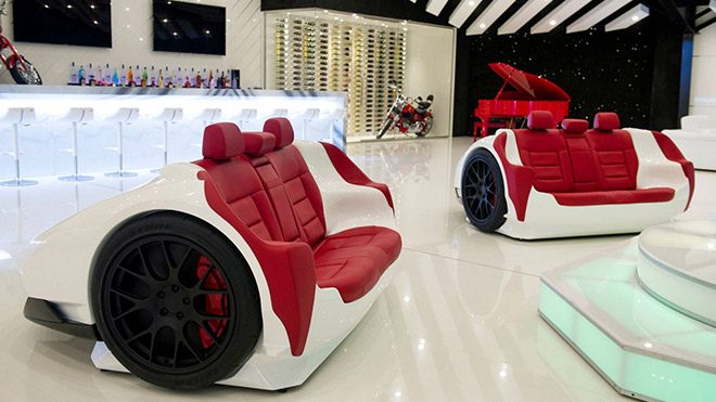 Söz konusu lüksün sınırlarını zorlamak olunca, hemen her şeyin mümkün olabildiğini geçtiğimiz dönemlerde yaşadığımız pek çok örnekle gördük. Asfalt üzerinde egzotik otomobillerle olan maceralarını başka bir boyuta taşımak isteyen kullanıcılar, hayranı oldukları otomobilleri sadece sokaklarda değil evlerinde de hayatlarının bir parçası olarak görme konusunda fazlasıyla cüretkar. Geçtiğimiz ay içerisinde bir 2,2 milyon dolarlık fiyatla alıcı bulan Pagani Zonda Revolucion modelini, bir oturma odasına dekor haline getirilmiş bir şekilde görmek, pek çok kişi gibi bu alanda bize de yetti. Bu furyanın bir başka boyutu ise doğrudan mobilyaları etkiliyor. Egzotik otomobilleri masa başta olmak üzere pek çok mobilya eşyası olarak baştan yaratan Polonya merkezli Design Epicentrum markası, Lamborghini Murcielago‘yu bir koltuk takımına dönüştürerek meraklılarının yeni gözdesi olmaya adaylığını koyuyor.