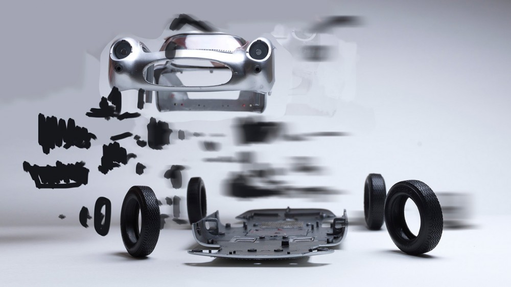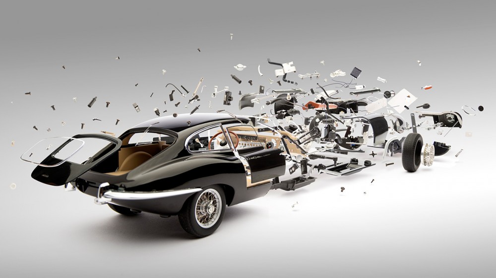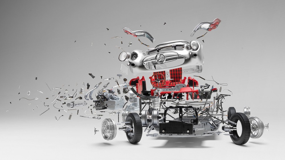 İsviçreli sanatçı Fabian Oefner tarafından gerçekleştirilen bu ilginç fotoğraf çalışması, ikonik otomobillerin patlatılıp tüm parçalarının sağa sola saçılmasını öngörüyor. Ancak işin perde arkası bu kadar basit değil. Otomobilleri ve tüm parçalarını gerçeğe uygun olarak modelleyen Oefner, çizim aşamasından yapım aşamasına kadar her şeyi ince ince işliyor. Elde ettiği otomobil parçalarının replikalarını önce tek tek fotoğraflayıp daha sonra hepsini aynı karedeymiş gibi bir araya topluyor.