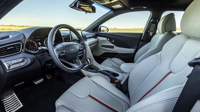 Ailenin ilk üyesi olan ve standart versiyon olarak nitelendirebileceğimiz Veloster‘da, gözle görülür tasarım değişimleri var. Ön bölümde tamamen yeni ve araca temel karakteri katan tampona ve ızgara birlikteliğine yer veren Hyundai mühendisleri, arka bölümde de karakteri tamamlayıcı büyük bir difüzör ve çift çıkışlı egzoz sistemini kullanmış. Kokpit bölümünde ise günümüz Hyundai modelleriyle benzer bir yapının kullanıldığı araçta 8 inç’lik multimedya ekran, geri görüş kamerası, kablosuz şarj, ön bölge çarpışma asistanı, şeritte tutma asistanı, uzun far asistanı ve sürücü dikkat uyarısı gibi donanımlar sunuluyor.
