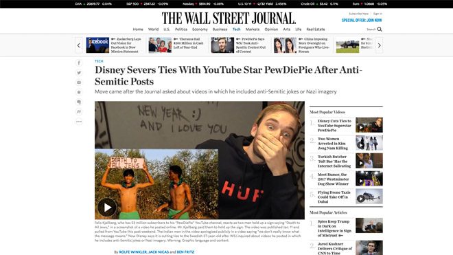 Tüm bunları anlatmamızın sebebi elbette PewDiePie ve ana akım medyanın zaman içinde ilişkilerinin giderek kötüleşmesi. Ana akım medyanın işini layığıyla yapamamasının yanı sıra bilindik ve güvenilir kuruluşların nasıl bir anda yellow journalism denen asparagas habercilik yapmaya başlamasına giriş yaptık. Şimdi gelelim WSJ’ın etikten uzak, tamamen cımbızlanarak hazırladığı habere. Esasen bunu haber olarak adlandırmak zor zira WSJ direkt olarak savaş açtı.