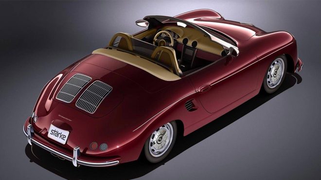 Porsche tarihini çıkış noktalarından birisi olarak bilinene 356 serisi, günümüzün en önemli klasik otomobilleri arasında kendisine yer edinir. Her koleksiyonerin hayali olan serinini Speedster modeliyse zaman içerisinde farklı versiyonlarla sunulan ailenin belki de kilometre taşı görevini üstleniyor. Jaguar’ın E-Type‘ta yaptığı gibi Porsche tarafından da marka içerisinde ayrı bir noktada tutulan Speedster, meraklıları için replika formuyla tekrar hayata dönüyor. Amerika merkezli Stärke markasının rozetiyle üretilen replika modeller, iç tasarımın modernleşmesi dışında tamamen klasik versiyonla aynı hatları barındırıyor.