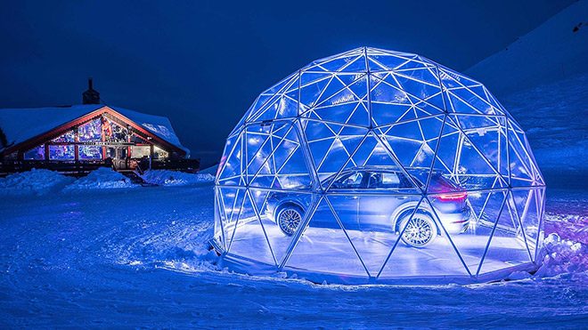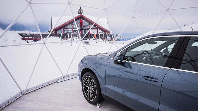 Fransız Alpleri içerisinde yer alan bir kayak merkezinde kurulan showwom 2018 Porsche Cayenne ile bölgedeki turistlerin keyifli bir deneyim yaşamasına olanak tanıyor.