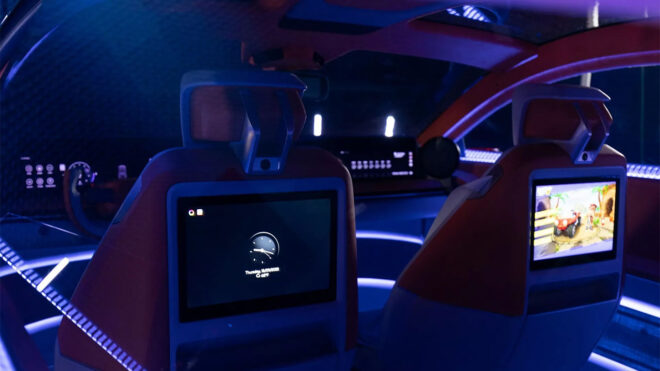 CES 2023 fuarında otomobil odaklı gelecek gösterimleri gerçekleştiren firmalar arasında mobil işlemci devi Qualcomm da yer alıyor. Fuarda karşımıza Snapdragon Digital Chassis ile çıkan firma, bu konsept olarak gösterdiği araç ile dijital ekosistem çevresinde kurulacak geleceğin araçlarının nasıl olacağını gözler önüne seriyor. Herhangi bir satış amacı güdülmeyen bu Snapdragon logolu araç, gelişmiş teknolojiler üzerine kuruluyor ve kokpit alanında baştan başa uzanan büyük bir ekran taşıyor. Bu yatayda 55 inç boyutundaki ekran hem sürücüye hem de yolcuya aynı anda çok sayıda bilgi verebiliyor. Modelin arkasında da büyük ekranlar bulunuyor.