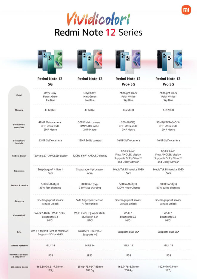 Ailenin en altında yer alan 5G destekli normal Note 12 modeli ise gücünü Snapdragon 4 Gen1 işlemciden alıyor. 33W hızlı şarj destekli 5.000 mAh pile sahip olan telefon, 6,67 inç 120 Hz OLED ekran üzerine kuruluyor ve 48 megapiksel ana + 2 megapiksel derinlik kameralarına sahip. Telefonların Çin başlangıç fiyatları yaklaşık 235 dolardan başlıyor, 332 dolara kadar çıkıyor. Fiyat-performans konusunda gerçekten oldukça iddialı olan telefonlar, modele bağlı olarak en düşük 4 GB, en yüksek 12 GB RAM ile alınabiliyor. Depolama seçenekleri se 128 GB ve 256 GB seviyesinde yer alıyor.