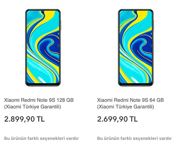 Redmi Note 9 Pro ve Note 9 Pro Max sonrasında aileye katılan Redmi Note 9S, kısa süre önce sessiz sedasız büyük bir satış kanalında Xiaomi Türkiye garantili olarak 64 GB depolama ile satışa sunulmuştu. Şimdi modelin iki farklı versiyonu “daha büyük bir satış kanalındaki” yerini aldı. Buraya göre dikkat çeken akıllı telefonun Xiaomi Türkiye garantili 64 GB depolamalı sürümü 2.699 TL‘ye, Xiaomi Türkiye garantili 128 GB depolamalı sürüm ise 2.899 TL‘ye elde edilebiliyor. Model için üç farklı renk seçeneği sunuluyor. Firmanın yakın zaman içerisinde global pazara özel Redmi Note 9 ve Mi 10 Lite modellerini de Türkiye’de satışa sunması bekleniyor.