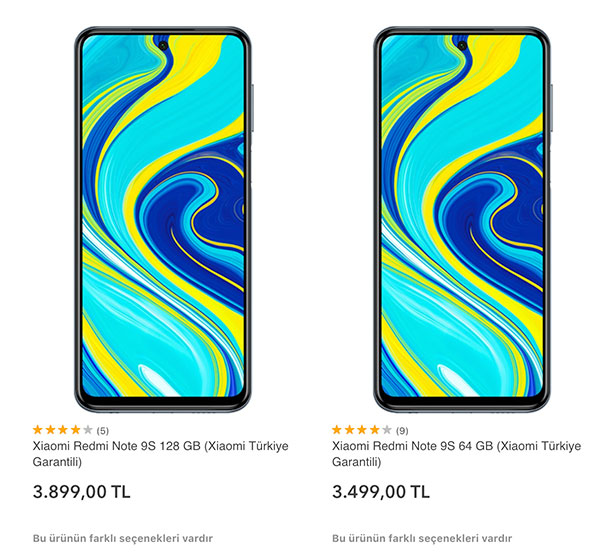 Redmi Note 9 Pro ve Note 9 Pro Max sonrasında aileye katılan Redmi Note 9S, hatırlarsınız geçtiğimiz haftalarda Xiaomi Türkiye garantili 64 GB depolamalı sürümüyle 2.699 TL‘ye, Xiaomi Türkiye garantili 128 GB depolamalı sürümüyle ise 2.899 TL‘ye satışa çıkmıştı. Kısa süre önce ise modelin Xiaomi Türkiye garantili 64 GB depolamalı sürümü 3.499 TL‘ye yükseldi. Xiaomi Türkiye garantili 128 GB depolamalı sürüm ise 3.899 TL‘ye kadar çıkış yaptı. Xiaomi Türkiye Resmi Distribütörü Evofone’un resmi satış kanalında da fiyat etiketleri kaldırılan modeller, fiyat konusuda yeniden normale döndü. Aşağıda görebileceğiniz büyük bir satış kanalından gelen yeni fiyatlar yine de ilk belirlenen fiyatlardan 100 TL daha yüksek (2.799 TL ve 2.999 TL) seviyede. Ancak bu eski fiyatlara göre kabul edilebilir bir artış ve aynı zamana modellerin yakın zamanda ciddi indirimler ile çok daha ucuz hale gelmesi bekleniyor.