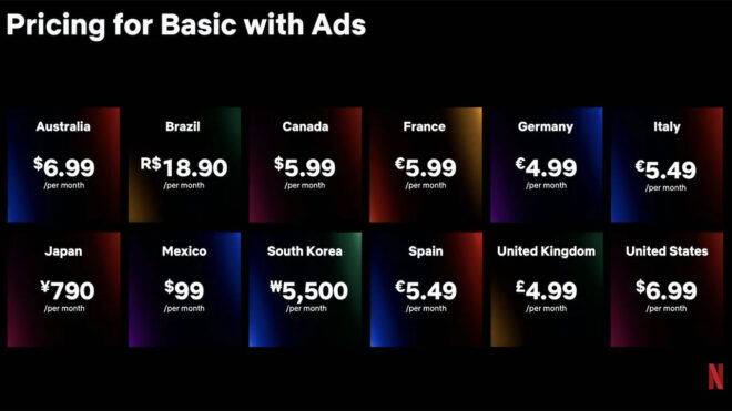 Netflix, son dönemde yaşadığı ciddi düşüşü ve kayıpları daha ucuz aylık fiyatı bulunan reklam destekli abonelik ile engellemek istiyor. İşte bu merak edilen yeni abonelik paketi, yapılan resmî açıklamaya göre ABD’de aylık 6,99 dolar olacak ve 3 Kasım tarihinde kullanıma çıkacak. ABD’de şu an en düşük abonelik 9,99 dolar seviyesinde yer alıyor. Maksimum 720P çözünürlük destekleyecek ve saat başı 4-5 dakika reklam gösterilecek bu yeni paketin aktif edileceği ilk ülkeler, “ABD, Avustralya, Brezilya, Kanada, Fransa, Almanya, İtalya, Japonya, Kore, Meksika, İspanya ve Birleşik Krallık” olarak açıklanıyor.