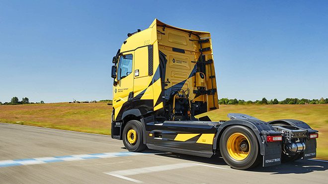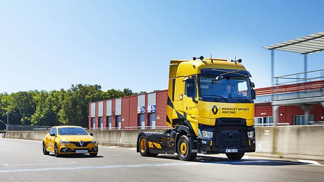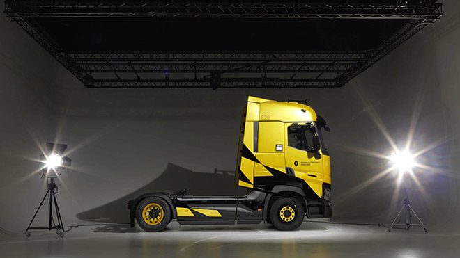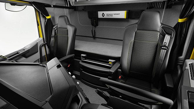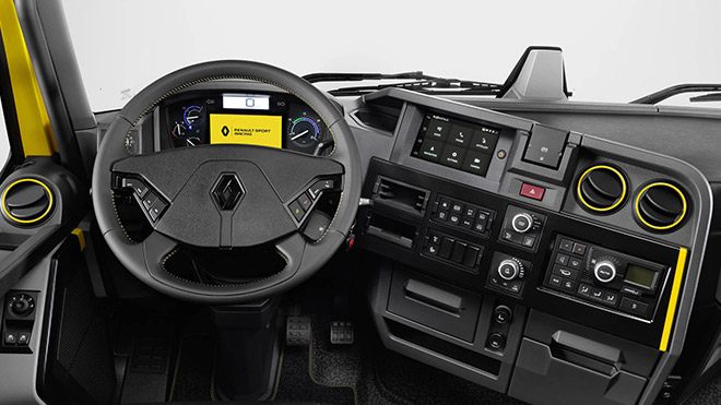 Renault Trucks’ın standart T serisi çekicisi üzerine geliştirilen bu özel üretim versiyon karakteristik değişimlerden ibaret. Yarış takımının rengi olan sarının jantlarda da ağırlıkta tercih edildiği çekicide ayna ve diğer gövde parçalarıysa siyah renk şemasıyla tamamlanıyor. Dış tarafta yaratılan performans odaklı havanın altını içeride de dolduran Renault, Recaro koltukları ve direksiyonu deri döşeme olarak gönderiyor. Konsolda yer yer karbon detayları uygulanması da gözümüzden kaçmayan değişimler arasında. T High Renault Sport Racing’in motor bölümü ise standart T serisi ile birebir benzerlik göstermekte. Burada 13 litre hacimli altı silindirli dizel motor 520 beygir güç ve 2.550 Nm tork değeri üretiyor. Renault Trucks tarafından toplamda 99 adet üretileceği açıklanan versiyonun bu sınıfta fark yaratacak bir karaktere sahip olduğuna hiç şüphe yok.