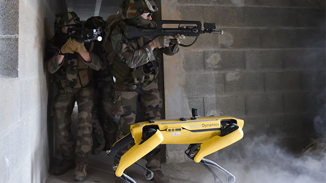 Bu robotların ilk kez ticari olarak satışa çıkan versiyonu ise robot köpek Spot. İşte bu model, Fransa ordusu tarafından askeri eğitimi sürecinde test edilmeye başlandı.