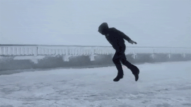 Mount Washington Gözlem Evi‘nin gözlemcilerinden Mike Dorfman ve Tom Padham’ın New Hampshire’da yer alan dağ üzerindeki şiddetli rüzgarda ayakta kalma çabası gerçekten de görülmeye değer. Saatte 160 kilometre hızında esen rüzgarda zorla hareket edilirken düşmeden uzun süre ayakta kalmak neredeyse imkansız gibi görünüyor. Rüzgara karşı bir şekilde oturulduğunda rüzgarın gücüyle düşmeden durmak mümkün oluyor. Havaya zıplandığında ise tahmin edebileceğiniz gibi işin sonu pek de iyi bitmiyor. Hemen aşağıdan bu izlemesi keyifli videoya ulaşabilir ve buradan konuyla ilgili diğer detaylara göz atabilirsiniz.