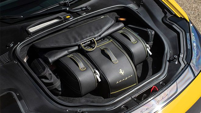 458 Spider tabanlı olarak geliştirilmiş bir otomobil olan Ferrari Sergio’da 4,5 litrelik V8 makineye yer veriliyordu. Bu motor her ne kadar standart 458 ile birebir aynı olsa da, araçta sunulan 600 PS‘lik güç değeri Speciale seviyesinde planlanmıştı. Bu verilerle o güne kadar üretilmiş en güçlü V8 motora sahip Ferrari modellerinden birisi olarak da kayıtlara geçen Sergio, bir anlamda günümüzde hüküm süren 488’in abisi konumunda. Düzenlenecek açık artırma etkinliğine satışa sunulacak olan aracın 3,5 ile 4 milyon dolar arasında alıcı bulması bekleniyor. Biz de bu özel modelin içerisinde sunulan detayları ve zarifçe düşünülmüş bavul setini incelemeye devam ediyoruz.