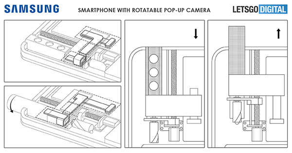 LetsGoDigital tarafından bulunan ve görselleştirilen yeni Samsung çalışmasında karşımıza pop-up kameralı bir telefon çıkıyor. Samsung’un bu pop-up kamerası temelde hem ön hem de arka kamerayı bir araya getiriyor. Çünkü firma kamera modülünü hareketli şekilde tasarlamış. Bu modülde toplam üç adet kamera yer alıyor ve en üstteki kamera, modül yukarıya çıkıp döndürüldüğünde selfie kamerası görevini üstleniyor. Bu sayede ana kamerayla yüksek kaliteli özçekimler yapılabilecek gibi görünüyor. Elbette bu kamera modülünün ne zaman kullanılacağı ya da gerçekten kullanıma alınıp alınmayacağı henüz bilinmiyor. Ancak altyapı oldukça ilginç ve fazlasıyla da kompleks görünüyor. Firmanın bu hem motorlu hem de hareketli modül için ciddi mekanizmalar hazırladığı ve modülün telefon içerisinde çok ciddi yer kaplayacağı görülüyor.