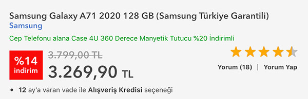 Samsung Galaxy A71 artık “430 TL” daha ucuz!