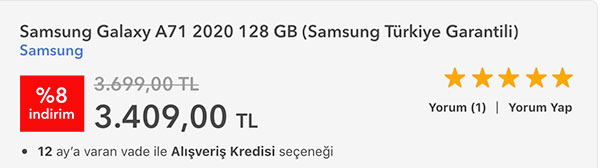Samsung Galaxy A71 artık neredeyse 300 TL daha ucuz!