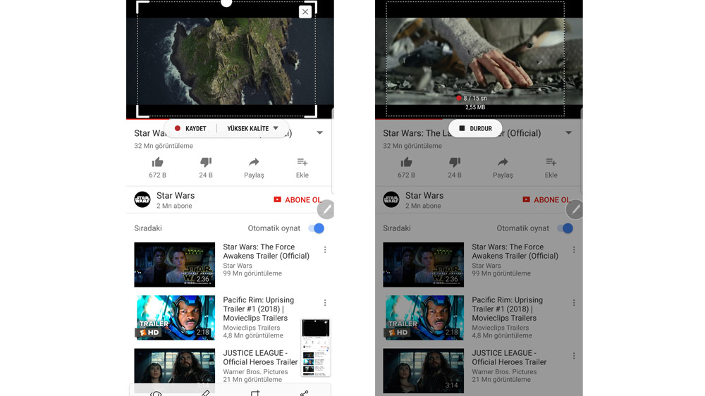 S Pen’in eğlenceli özelliklerini de kullanmadan olmaz elbette. Örneğin internette izlediğiniz herhangi bir videoyu ya da telefonunuzun ekranının bir kısmını kaydedip GIF’e dönüştürebilirsiniz. S Pen’in menüsünden “Akıllı seçim” tercihine dokunduktan sonra en sağda yer alan Animasyon seçeneğini kullanmanız yeterli. Kısa bir kayıt süresinden sonra GIF’iniz paylaşılmaya hazır.