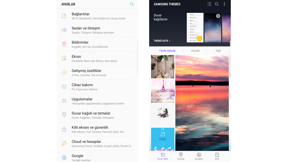 Android işletim sisteminin en sevilen özelliklerinden biri kişiselleştirme. Galaxy Note 8 için de durum farklı değil. Örneğin sıkıldıkça temayı değiştirebilirsiniz. Bunun için de Ayarlar > Duvar kağıdı ve temalar kısmına girmeniz yeterli.