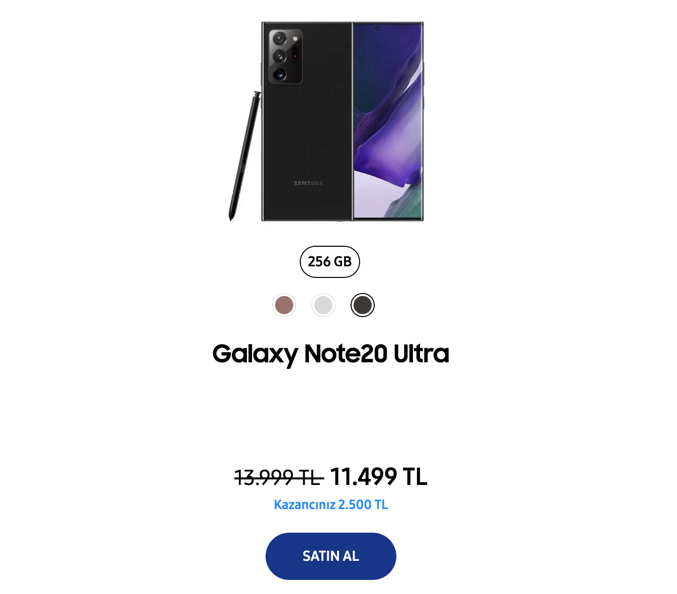 Samsung Galaxy Note20 Ultra için 2.500 TL indirim yapıldı. Telefon daha önce 13.999 TL seviyesinde satılıyordu. İşte detaylar;