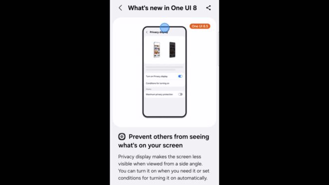 Yakında resmi olarak tanışacağımız Samsung Galaxy S26 Ultra, ekranını meraklı gözlerden “Privacy Display” özelliğiyle gizleyebilir. One UI 8.5 kodları üzerinden elde edildiği kadarıyla Samsung, “Privacy Display” adında yeni bir özellik üzerinde çalışıyor. Doğrudan Samsung Galaxy S26 Ultra için hazırlandığı düşünülen bu özellik, aktif edildiğinde telefonun ekranındaki içerikleri yan açılara gizliyor. Ekranı karartarak yanda oturan kişilerin açılan içerikleri görmesini engelleyen faydalı özellik, iddiaya göre Samsung Display tarafından geliştirilen yeni bir ekran/panel teknolojisini temel alıyor.