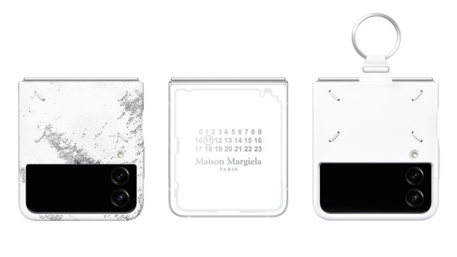 Samsung ve Maison Margiela, bu özel versiyon için iki ayrı telefon kılıfı da tasarlandı. Maison Margiela’