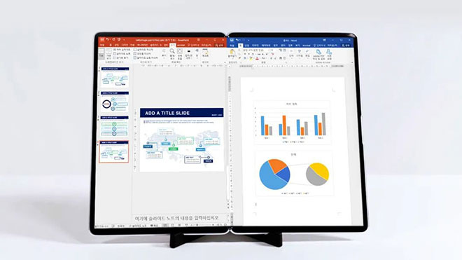 Bu görselini yukarıda gördüğünüz ekran, firmanın geleceği için önemli bir gösterim olacak. Firmadan ayrıca 17 inç boyutunda bir katlanabilir ekran da gelecek.