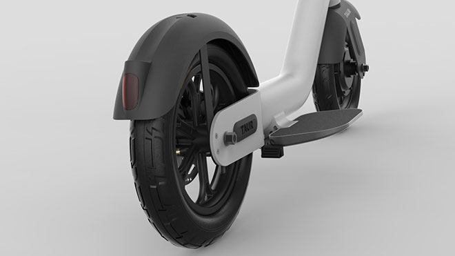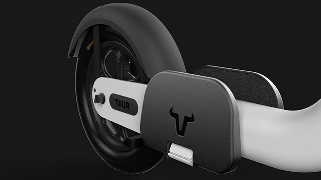 Sürüş sırasında ayakların gövdenin kendisine değil yanlara konulan ve kapatılabilen bölümlere konulan Taur, Continental imzalı kalın lastiklere ve bunları saran çamurluklara sahip. Gece sürüşü için yerleşik LED aydınlatması olan elektrikli scooter, arkasında hidrolik disk fren taşıyor. Öndeki fren sistemi ise frenleme sırasında oluşan enerjiyi pile geri aktarabiliyor.